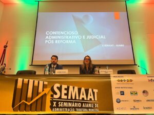 O X Seminário AIAMU de Administração Tributária Municipal (SEMAAT) recebeu, no Centro de Eventos da AIAMU, em Porto Alegre, a palestra da Desembargadora do Tribunal de Justiça do RS, Cristiane da Costa Nery, que abordou o tema “Contencioso administrativo e judicial pós-reforma”. A mesa foi coordenada pelo Procurador-Geral do Município de Porto Alegre, Jhonny Prado.