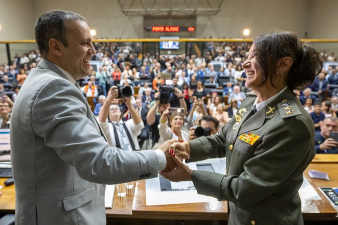 Durante a cerimônia, Comandante Nádia apresentou um balanço de sua gestão, destacando investimentos em inovação, tecnologia e cultura, além da revitalização de áreas da Câmara atingidas pela enchente de 2024 e ações voltadas à segurança institucional e à defesa da democracia.