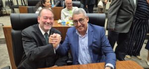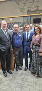 O presidente da Associação dos Auditores Fiscais da Receita Municipal de Porto Alegre (AIAMU), Johnny Bertoletti Racic, participou da cerimônia em que Simone Somensi, Procuradora-geral Adjunta de Domínio Público, Urbanismo e Meio-Ambiente, foi agraciada com o título de Cidadã de Porto Alegre. A homenagem, realizada na Câmara Municipal, reuniu autoridades, representantes de entidades e convidados para reconhecer a trajetória e as contribuições da homenageada à cidade.