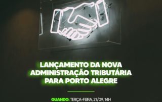 Amigos, na terça-feira, 21, às 14 horas, vocês estão convidados para acompanharem a apresentação da nova administração tributária promovida pela Secretaria Municipal da Fazenda de Porto Alegre/PMPA. O evento será transmitido pelo Facebook da Prefeitura.