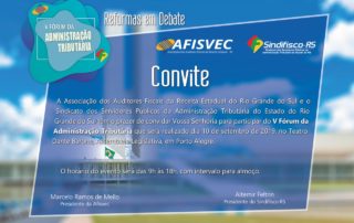 A AIAMU estará representada no V Fórum da Administração Tributária, que será realizado dia 10 de setembro, das 9h às 18h, no Teatro Dante Barone, na Assembleia Legislativa do Rio Grande do Sul. O presidente Fernando Ismael Schunck participará do evento como convidado, representando a categoria dos Auditores Fiscais do Município de Porto Alegre.